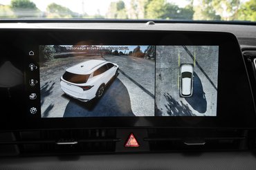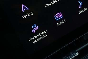 Egyébként menet közben még a hátsó kamerát is be tudjuk kapcsolni a kameragombbal, bár ezt könnyű megunni. A madártávlatos nézetben az autót körbe lehet forgatni a képen, és minden irányból megnézhető, milyen akadályok vannak körben, kisgyerek, kutya, kiálló szikla. Nagyon hasznos cucc, kár, hogy csak a Platinum kivitelnél rendelhető (300 ezerért). A tesztelt GT Line-on meg széria – viszont a két alapabb szinten nem elérhető.