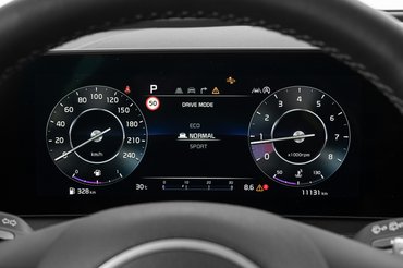 A Sportage tesztautó még egy műszaki fícsört kínált: változtatható lengéscsillapítása is volt. Ennek az alap hangolása elképesztően komfortos, de azért van az a kátyús magyar út, ahol megáll a tudomány a 19-es kerekekkel. Lépésben, akár földúton egészen kiválóan rugóz ki bármit. Sport állásban pedig az elvárásnak megfelelően jó zötyögősre vált, de akkor jön meg az a közvetlen kormányzás, ami a normál módhoz képest sokkal többet ad. Ilyenkor a váltó és a motor élénksége is sokat javul, hiszen jellemzően magasabb fordulatszámot tart – csak hát a városi vánszorgáshoz ez sem megoldás. Van még egy Eco mód, amit ilyen fogyasztás mellett nem is forszíroztam túlzottan, kár, hogy nincs egy összeválogatható üzemmód. A különböző hangolásokhoz eltérő műszeregység-grafika is jár.