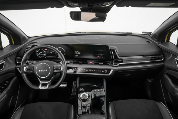 A Sportage belseje talán még egy fokkal futurisztikusabb, mint a külseje. A Mercedesek hatalmas kijelzőjét ért vasalódeszka-vádak kimozgására a Kia belerakott egy ívet a méteres kijelző(k)be, persze itt is az a trükk, hogy valójában kettő, hatalmas LCD van egybe keretezve. A rendszer pontosan ugyanaz, mint amiket az EV5-Hyundai Ioniq párosban látunk, csodálatos 360 fokos kameraképpel, egész jó menürendszerrel, és az évszázad ötletével: ha már ott a kamera a tükrök aljában, indexeléskor megjelenik a kép, vagyis látjuk például kanyarban a járdaszegélyt, ami egy mélygarázsban igazi áldás.