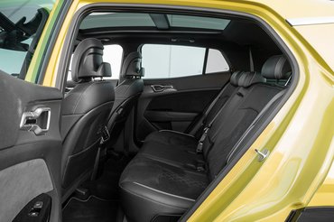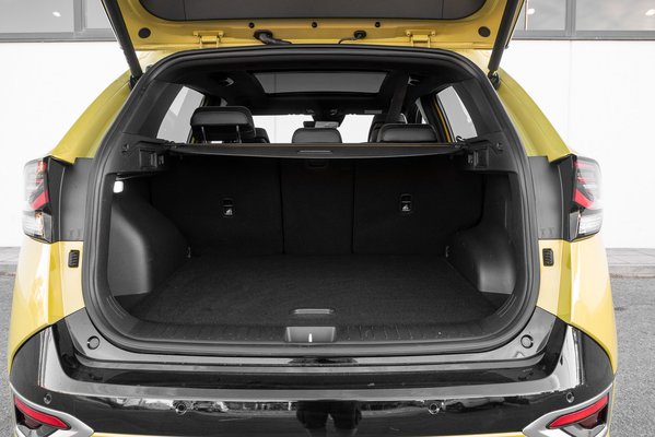 A nagyság már azért sem volt kérdés, mert már az előző Sportage is bazi nagy volt, ehhez épp csak apró centiket kellett hozzáadni. A 2,68 méternyi tengelytáv fölé akkora utastér fér el, ami már szinte sok. A csomagtartó-méretek nagyon függenek a motorizáltságtól, de a legkisebb csomagtartójú, összkerekes, dízel, 48 voltos enyhe hibridé 520 literes; az alap, semennyire nem hibrid, T-GDI kézi váltós Sportage csomagtere már 590 liter. A 180 lóerős tesztautónál a csomagtartó 562 liter volt alapból, a másik véglet két üléssel bő 1,7 köbméter. Ennek a verziónak viszont nincs pótkereke.