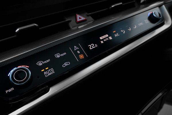 A Sportage külön klímapanelt kapott, ez gyakorlatilag ugyanaz, mint az EV6-é – a hőfokszabályzók tekerőgombok, minden más érintőgombos rajta, de nem kell külön menüben barangolni, ha máshová irányítanád a levegőt, vagy sokallod a ventilátort. Valójában ergonómiailag egészen jó a modell, pár apróságon persze lehetne rugózni, például minek egy központi kijelzőn a kezdőképernyő, ahol plusz egy tapizás, ha bármit szeretne csinálni az ember, mert itt annyi történik, hogy kiírja az aktuális rádióállomást, és haloványan megjeleníti a térképet.
