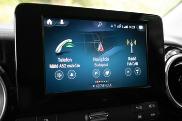 A belteret első ránézésre nem könnyű megkülönböztetni a mezei Citanétól, de az anyaghasználat, a műszerfal tetejének bőrözése - és az onnan hiányzó, nyitható fedelű rekesz - azért szemet szúr. Sokat dobna a luxus-érzeten, ha a sofőr előtti műszeregység így 2022-ben már teljesen digitális lenne, cserébe a központi kijelzőn futó MBUX kezelőfelület kifogástalan.