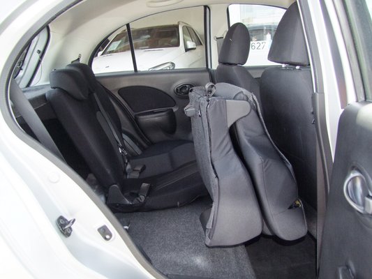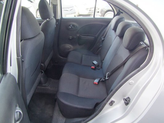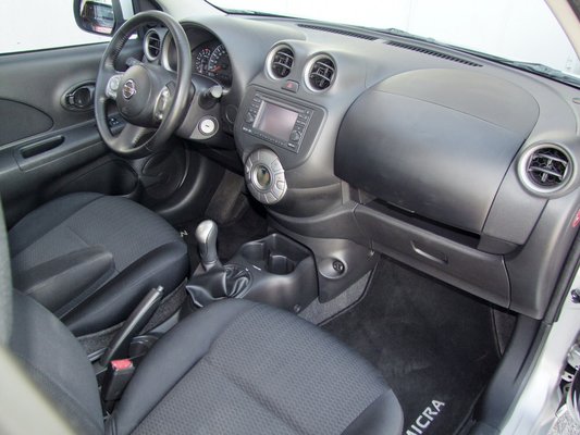 Az üléspozíció relatíve magas, tehát érzésre inkább az ülésen, mint az ülésben ülünk, cserébe jó a kilátás az átlátszó ablakokon át, és könnyű beszállni a kifelé nyíló ajtókon. Hátul nincs nagy helybőség, mert a kortárs D Corsával, Hyundai i20-szal, Skoda Fabiával, Grande Puntóval ellentétben a Micra tényleg kicsi, az említett típusoknál minimum 20 centivel rövidebb. Vagyis aki családi használatra akar kisautót, az jobban jár mással, városban viszont előny a Micra mérete és fordulékonysága, ha főleg egy-kétszemélyes használat a terv.