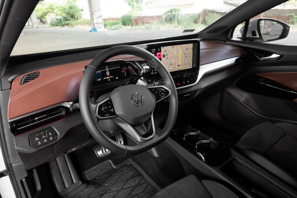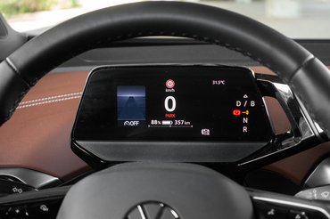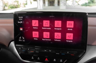 Ezekhez a különösen a vételár tükrében nehezen megindokolható furcsaságokhoz hasonlókat rejt a kormány és az érintőképernyős központi rendszer kezelőfelülete is. Mindezt úgy, hogy meg kell adni neki, jóval könnyebben áttekinthető és megtanulható, mint az első, eleve elektromosnak készült VW, az ID.3 rendszere volt. Ráadásul azzal is segít, hogy a feliratok magyarok, azonban a hangvezérlés még nem beszéli a nyelvünket. Szintén jó, legalábbis például a Cupra Bornhoz képest, hogy a kormány gombjai nem simogatósak, hanem billenőgombok és a megnyomásukat harangszóval is visszaigazolják.
