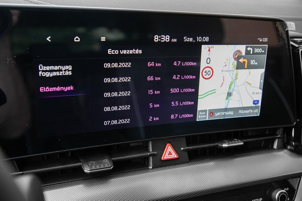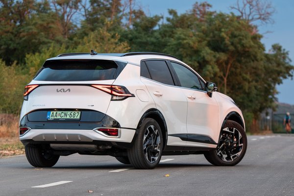 A katalógus szerint mindebből 60 kilométernyi tisztán elektromos hatótávot lehet kisajtolni, de a valóságban - a teszthét alatt - ez közelebb állt a 45-50-hez, pedig javarészt egyedül és nem is kimondottan gyorsan közlekedtem - miközben a szintén huszonmilliós Toyota RAV4 magabiztosan tudja a 70+ kilométert. A Sportage a neve ellenére nem kívánja a sebességet, tempós haladás mellett tétovázik az automata, olyankor is vált, amikor az embernek eszébe se jut, cserébe viszont nem bőg, mint a konkurensek CVT-i.