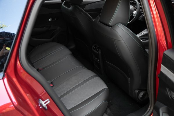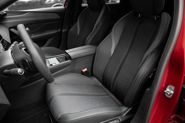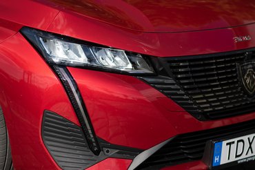 Az első ülések feszesen tartanak, figyelmes részlet, hogy a fejtámla alsó állásban egy neki kialakított mélyedésbe illeszkedik, de a csuklyás izomként kitüremkedő felső, szürke válltámasz is mutatós. Az üléspozíció az alacsonyra épített kormánnyal szokatlan lehet, a digitális műszeregységbe pedig úgy is beletakar a kormány, hogy a teteje le van csapva: az új 308-asban nyolcszögletűre nyesték a hagyományos formát. A vezetésben engem nem zavart, de azt is megértem, ha a kerekség-fetisiszták hiányolják a kanyar után egyenesbe forgó, tenyeret simogató karima töretlenségét.