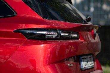 A műszerfal tervezőit így is ünnepelni kell, amiért mind a három dimenzióban mertek vonalakat húzni: vannak mélységek, kiemelkedések és törések, csak a fent, katanaként ívelő fémes betétben több kreatív energia feszül, mint az összes Tesla belterében együttvéve. Lesz, akinek mindez már sok, az infotainment főképernyője alatti panel is inkább tűnik a koherens formaterv és a marketing-érték miatt született toldatnak, semmint ergonómiailag megindokolható megoldásnak.