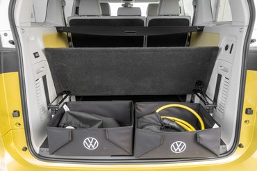Mindjárt rá lehet persze vágni, hogy hahó, így is akkora a csomagtartó, mint egyetlen másik autóban sem. De azért mégiscsak lehetne elegánsabban! És azt, hogy lehet, maga a VW mutatja meg egy becsavarozható polcrendszerrel. Igaz, a rögzítő csavarokat jó sokat kell tekerni, mintha nem arra volnának, hogy folyton-folyvást variáljuk a csomagtartót, de ezzel valóban sokoldalúbbá válik a Buzz. Ha ugyanis becsavarozzuk, mindjárt keletkezik helye a töltőkábeleknek, és még egy plusz rejtett rekeszt is kapunk. Ezért cserébe csak azzal kell áldoznunk, hogy egybefüggően nem egy köbméteres, hanem körülbelül 600 literes csomagtérrel lehet számolni.