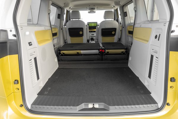 Ezeket az égbekiáltónak talán nem nevezhető problémákat leszámítva még az ID Buzz személy-kivitele is beválna adott esetben teherautónak. Aláhúzza ezt a terhelhetősége is. Az 529 kilogrammba az öt utason felül (75 kg-os átlaggal számolva összesen 375 kg), még 154 kilónyi rakomány tehető be, ami azért elég combos az átlagosnak számító 60-80 kilóhoz képest. (A teherszállításra kitalált Cargo változat természetesen még teherbíróbb, az mindent egybevetve 648 kilót vihet magával.) Ám ezeken túlmenően is találni a teherautós rokonságnak betudható tulajdonságokat. Ilyen a magas üléshelyzet, a nagy ablakokon keresztül nyíló jó kilátás, a két oldalsó tolóajtó. A mérleg másik serpenyőjében azonban ilyen az is, hogy a második sornak nem jutott külön klíma vagy szellőzőnyílás, és hogy az utastérben minden kemény műanyagból készült, kivéve az ajtók könyöklőjét.