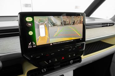 Ezzel együtt szerintem jól néz ki az utastér és a műszerfal is, amin, ha már ült valaki bármelyik korábbi ID-ben is, minden egység ismerős. A műszeregység helyetti kijelző a kormányoszlopon ül, fokozatokat választani a jobboldali bajuszkapcsoló végének tekergetésével lehet, és a műszerfal tetején is az ismerős érintőképernyő csücsül. Mindez nem csoda, hiszen az ID Buzz a nevével is jelzi, hogy a Volkswagen márka MEB padlólemezére épülő, elektromos hajtású ID család tagja. Ennek megfelelően az előnyök és a hátrányok is azonosak, mint például, hogy a kijelzőnek elég jó a képe, a menüjét megtanulni sem ördöngösség, de némely parancs végrehajtása elhúzódik kissé, és a klíma esetében csak a hőmérsékletet lehet közvetlenül álltani, minden máshoz be kell hívni a menüt, ami például navigálás közben nem nagy öröm. Akkor sem, ha a navigáció, bár korlátozott mértékben, de a műszeregységen is megjeleníthető.
