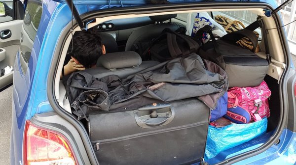 Először is, a csomagtartó kicsi... De ha hátul csak egy gyerek ül, a másik ülést ki lehet venni alaposan össze lehet hajtani. Nem kellett semmit otthon hagyni, jöhettek a műanyag dínók, a felfújható unikornisos gumimatrac. Hátul Rudinak akkora lábtere volt mint egy limuzinban, mégis minden befért.