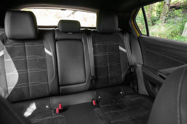Az anyaghasználatba és az összeszerelési minőségbe sem tudok belekötni, spórolásnak semmi nyoma, vagy ha mégis, akkor olyan jól elrejtették, hogy nem vettem észre. Külön üdvözlöm, hogy a hátsó ajtóra is jutott a puha, hasított bőrt imitáló anyagból, illetve a hátsó műanyagok sem olyan tapintásúak, hogy poszttraumás stresszt okozzanak. A csomagtér alakja szabályos, a pakolást magas perem nehezíti, a mérete pedig a kategóriában átlagos – 422 literes –, de nem túl bőkezű. Öt ember minimálisra redukált, szűk hétvégényi csomagját éppen elnyelte.