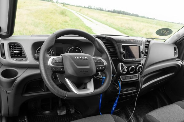 Az ülésből a hidrós került bele, ami elképesztően jó dolog tud lenni, pláne a magyar utakon. Néha nem is értettem, mi a problémája utastársaimnak, olyan szépen kimozogta a bukkanókat, kátyúkat. Ami még javíthatott volna a dolgon, a légrugós felfüggesztés, sajnos nem volt a kocsiban. A furgonoknál légrugó jellemzően hátul szokott lenni, hogy nagy tehernél se üljön meg az autó segge, de az Ivecónál teljes értékű rendszert adnak, így az első futóműhöz is jut belőle.