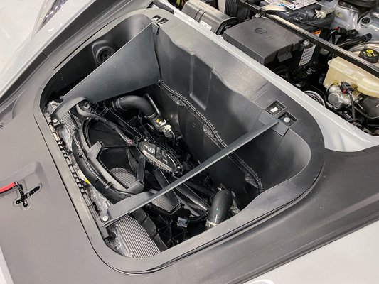 A Porsche eddig hármas osztatú hűtőt használt, vagyis volt két kisebb panel az első kerekek előtt, és egy harmadik, nagyobb középen. A két oldalsót ki kellett dobni, hiszen ide építették be azokat a nagyjából mikrohullámú sütő méretű dobozokat, amelyekben a változó állásszögű terelőlapok vannak. Ellenben egy 525 lóerős szívómotor rengeteg hőt termel, és kellett a hűtőfelület.