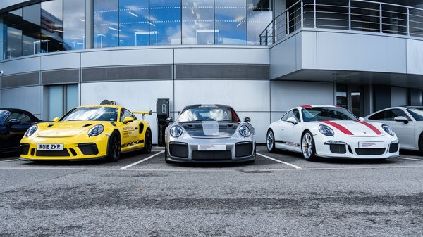 Silverstone nem egy város, csupán egy alig kétezer lelkes falu, a versenypálya komplexuma lényegesen nagyobb mint a település maga. A második világháborúig az Angol Királyi Légierő reptere volt, majd annak a három kifutópályáján kezdtek versenyeket rendezni a háború után. Akkor az angolok nyomultak Spitfire-ökkel, most viszont a németek hoztak ide komoly szárnyakat. Elég tüdőbeteg módon hörögnek alapjáraton a GT3-ak és GT3 RS-ek, és nem ám nyomorult vonatozás lesz, minden újságíró kap egy RS-t, és egy instruktort, aki felvezeti egy mezei GT3-mal. Pár hónapja még a torkomban dobogott a szívem, amikor a GT3 alá raktam a parazsat Isztambulban, most az RS mellett szinte láthatatlan, pedig döbbenetes gép az is.