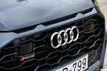 Az RS Q8-ra elég ránézni, hiszen már álló helyzetben is azt kommunikálja, hogy eltapos, kibelez és felfal, ha csak kicsit is megközelíted. A szerénység vagy a visszafogottság minimális csíráját se tartalmazza. Mindene brutális: a hatalmas díszrács, az óriási légbeömlők, a 23-as felnik és a vekni kenyér méretű kipufogóvégek is azt hirdetik, hogy ez a Q8 abszolút csúcsa. Érdekes módon azt viszont nem hirdetik olyan hangsúlyosan, hogy RS-ről van szó, erről ugyanis csak egy pici első és egy nem túl nagy hátsó típusjelzés árulkodik.