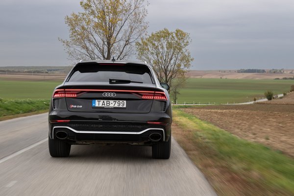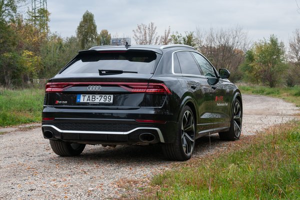 Kanyarokban sem elveszett az RS Q8, de érezhető, hogy itt nem tudták annyira átverni a fizikát, mint ahogy a gyorsulással. A hatalmas súly parittyaként húzza ki az ív külseje felé az egész autót, ami a gigantikus gumik utolsó morzsáival és a Quattro-hajtás minden igyekezetével próbál kapaszkodni az aszfaltba. Nem arról van szó, hogy nem lehet vele magához képest extrém tempóban fordulni, hanem arról, hogy érezhetően nem erre való, amitől a kanyargás nem mindig kellemes élmény. Nem, inkább úgy tűnik, hogy ez a számítógép és a mechanika küzdelme az elemekkel, ami egyszerűen nem érződik sportosnak, még a durva tempó ellenére sem.