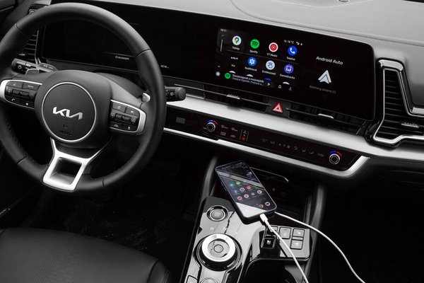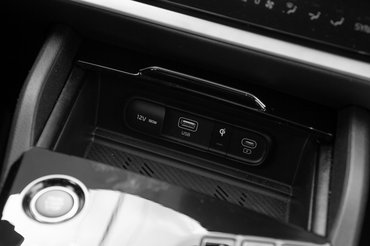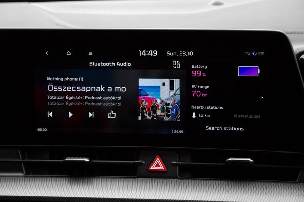 Ami szörnyű, hogy az Android Auto és az Apple CarPlay is csak USB-kábellel működik, ráadásul nem is a C-s csatlakozóval, hanem az öreg USB-A-val, tehát ha nemrég vetted a telefonod, akkor jó eséllyel még külön kábelt is vehetsz hozzá. Marha szerencsétlen, hogy bár a középkonzoli tárolóban (ahol az USB-csatlakozók is vannak) adott a Qi-töltő, de ha átlagosnál nagyobb magasságú a telefonod, akkor csatlakoztatott kábellel nem tudod normálisan odarakni, mert a kábelt is bele kell feszítened, szóval vezetheted ki a pohártartóba a mobilt, és nézheted a kilógó kábelt, miközben tükrözöd a telefont a központi kijelzőre.