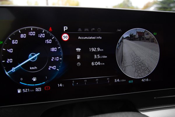 Oké, szóval megvan a dinamikusság, ha épp nagyon kell, de nem kívánod. Viszont ha már amúgy sem sietsz, a műszeregységet is szívesen állítod a fogyasztásmérő állásba, és próbálsz annyira finoman menni, hogy minél többet tudj tisztán villannyal haladni. Belőlem is ezt hozta ki a Sportage, mindenhol töltöttem, ahol tudtam, a városi forgalomban nyugodt villanyautósként csorogtam vele, országúton – szigorúan mások feltartása nélkül – próbáltam óvatosan menni, és autópályán sem sokat padlóztam a belsősávot, így bő 500 kilométerre 3,1 literes átlagfogyasztás jött ki.
