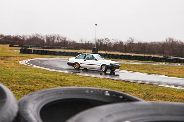 Amikor először vezettem a Shitgunt, nem volt sok fogalmam a driftről, az első kanyarban kiestem a fűre, pördültem párat a mezőn, átestem a pálya egy másik kanyarján, majd a bokrok mellett álltam meg. Ennek legalább 6-7 éve, és most sem tőlem kell tartania Csucsija Keicsinek, de végre megéltem, milyen érzés esőben, alig 40-nel megrajzolni egy hosszabb kanyart, aztán elkapni a terhelésváltást, és folytatni a másik íven. A nap végén pedig ott álltunk a két Toyota mellett, bőrig ázva, retkesen, a karunkat a földön húzva, de akkora vigyorral, hogy a Holdról is látszott. Vagyis visszaértünk oda, hogy ez a közösség, ez a móka is csak akkor van, ha vannak emberek, akik sportautóznak.
