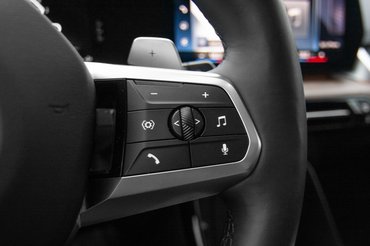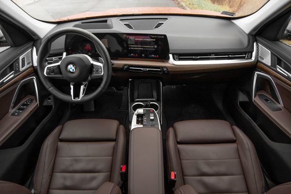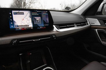 Aki a modern BMW-k friss ízvilágát hiányolja kívül, ne fordítson hátat azonnal, mert megkapja belül. A belső hatalmasat változott az elődhöz képest, minden bizonnyal az előnyére: a második generációs X1 mára már fáradtnak tűnő belterével köszönőviszonyban sincs a harmadik generációé. A leglátványosabb elem a műszeregységet és a központi kijelzőt egyben elnyelő, széles, ívelt deszka, ami függőlegesen kiemelkedik a műszerfal síkjából. Ehhez kiváló minőségű kijelzőket párosítottak, amik durva napsütésben is jól láthatók, de éjjel sem zavaróak. Itt van azért bénaság is: az íves lap hatalmas, de a kijelzők nem töltik ki rendesen a rendelkezésre álló teret, túl sok hús marad körülöttük. Ugyanakkor a fedélzeti rendszer és a kezelhetőség a nagyobb BMW-khez hasonlóan remek. Egyedül a kormányon lévő, függőlegesen tekerhető, vízszintesen billenthető kapcsolót nem tudom megszokni, mert nem emelkedik ki eléggé, ezért billentés helyett vagy lecsúszik róla az ujjam, vagy megnyomom, és olyankor teljesen más történik, mint amit eredetileg akartam.