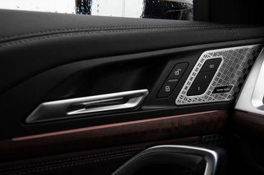 Különben az egész beltér rendkívül összeszedett és ügyes: az iX minimalista nappalijára hasonlít – amit én nagyon kedvelek – azzal a különbséggel, hogy ott a tér és az anyagok terén is több volt a mozgástér. A kedvenc részletem, hogy ötletesen bántak a formák térbeli kiterjedésével. A középkonzol kéz alá eső része optikailag lebeg, az ajtóbehúzók szinte már komikusan nagy, vastag fogantyúk, illetve a kijelzők széleinél induló fém dekorbetétek is kiugranak a síkból.
