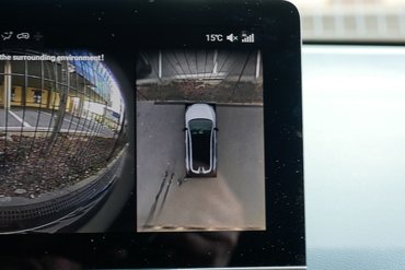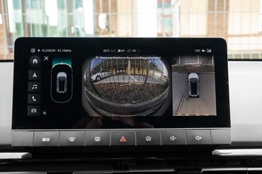 A kilátás viszont nehézkes. Erről a vastag "A" és "C" oszlopok tehetnek és ezen még a 360 fokos kamera sem segít, mert a kép felbontása közel sem tökéletes. Az ajtók viszont halkan puffannak, a hangszigetelés jó, az összeszerelés minősége példás! Az illata viszont néhányakat a kínai cipőboltra, akad akit új traktorra, engem pedig egy strandboltra emlékeztet.