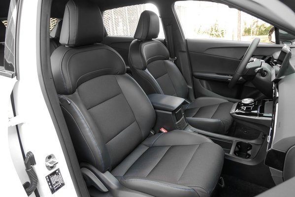 A helyzeten azonban sokat segít, hogy akkupakk vékony lett, mindössze 11 cm, így a hátul ülők lába nem kerül a nyakukba. Remek a hatszögletű kormány és kényelmesek az ülések: van ülőlap! És ötletes a kitüremkedő váltósziget is, de kitakarja az alatta elhelyezett USB csatlakozókat és a vezeték nélküli telefon töltőről is könnyen lecsúszik a telefonunk.