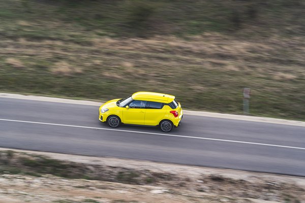 A Suzuki azt csinálja nagyban, amit a legtöbb fiatal tuner kicsiben: a lehető legkisebb anyagi ráfordítással a lehető legjobb eredményt akarja elérni. A futómű alapkonstrukcióján ennek megfelelően nem is változtattak, elöl MacPherson, hátul csatolt lengőkar, csillapítással és rugózással masszívan felkeményítve: ha ülnek hátul, érezni, hogy sok a terhelés, keresztbordákon elpattog és arrébb megy a hátulja, és egy körforgalomban is nagyon könnyen meg tudod találni a hátsó kerekek tapadáshatárát, egy ilyen, viszonylag szerencsétlen alapkonstrukciójú hátsó futóműből nehéz többet kihozni, ha nem csillagászati összegeket költenek rá, márpedig nem költenek rá.