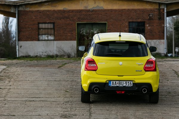 Észre fogod venni a parkolóban, nagyon sárga! Így kaptam meg a Swift Sport kulcsát, és tényleg nem kellett sokat keresni, a szürke-fehér-fekete autók rengetegében világítva üvöltötte a kocsi, hogy itt vagyok. Üvöltse is, ha már a kipufogóhangot nem csináltak neki.