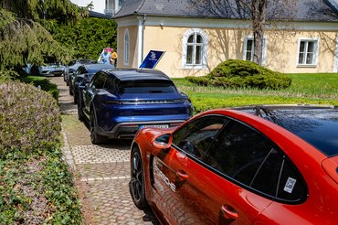 De ne menjünk fejjel a falnak, fontos a fokozatosság, elsőre inkább egy Panamerába tettem be magam. Nyilván viccesnek tűnik, hogy a 630 lóerős, V8-as túlzó szedán tűnt a legelső lépcsőfoknak, de azért mégiscsak egy 2,1 tonnás autóról van szó. A cseppet sem szerény, narancssárga Turbo S a sor legvégén állt, legelöl Walter Csabi vezette fel a konvojt egy 911 GT3 Touringgal.