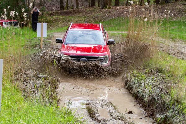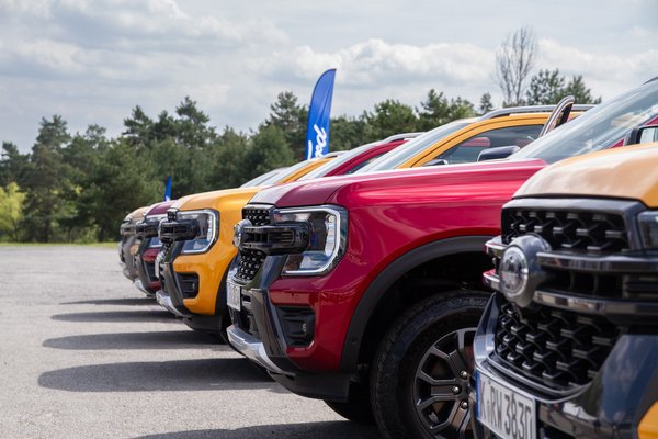 Nagyjából hat óra vezetés után érkeztünk a helyszínre, ahol katonás sorrendben menetre készen várt ránk a három „Lucid Red” piros és három „Cyber Orange” sárga Wildtrak a maga 3.0-ás V6 turbódízelével.
