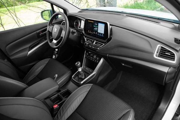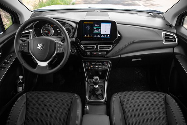 A beltérben viszont vannak kompromisszumos megoldások, ami remélem senkit nem lep meg, amikor egy olyan autóról van szó, ami elég nagy, miközben az ára mai viszonylatban alacsonynak számít. Igen, mindenki tudja, hogy miről beszélek, aki ült már valaha bármilyen Suzukiban: kopogós, kőkemény műanyagok és néhány kellemetlen tapintású felület az olcsóság egyik velejárója. De legalább a dizájn sokat fejlődött az utóbbi években, az S-Cross belseje ugyanis vállalhatóan néz ki, még ha le is van maradva egy pár évvel.