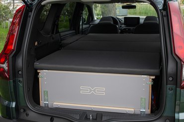 A Dacia legjópofább újítását is a természetjáró szemléletnek köszönhetjük. A Sleep pack egy fából készült összecsukható ágy, mely – harmadik üléssor nélkül – menet közben elfér a Jogger csomagtartójában, ám ha kell, alig 3 perc alatt szétnyitható. A főleg fából készült alkalmatosság 190 centi hosszú és 130 széles, míg terhelhetősége 180 kiló. Ára 1400-1500 euró körül (520-560 ezer forint) várható, ezért pedig matracokat is kapunk. Bár kezdetben csak új Joggerekhez rendelhetjük, később utólag is bárki beszerezheti.