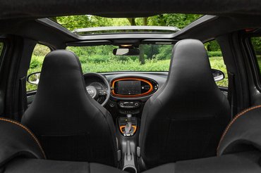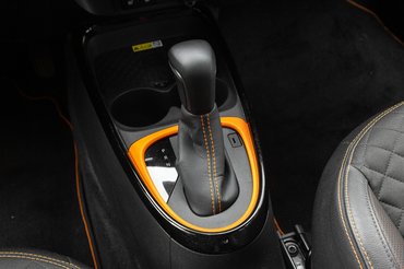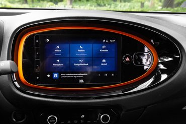 Ráadásul a külső színei a beltérbe is beszivárogtak, csak egy kicsit más arányban. A fekete dominál, de narancssárgák az ülések varrásai és perforációi, a sebváltó és az infotainment kerete, és a szőnyegek szélei is. Kardamom főleg az ajtók felső fém részére, valamint a légbefúvó rostélyok köré került. Azzal senki sem vádolhatja tehát a gyártót, hogy a beltér unalmas lenne.