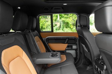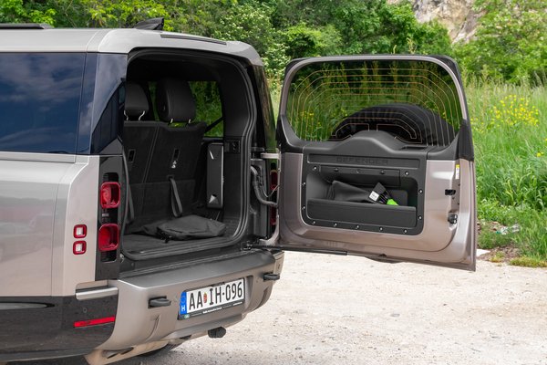 A középső ülések támláját előredöntve és magukat az üléseket előretolva viszonylag könnyű dolga van annak a három utasnak, akiknek leghátra szól a jegye. Igen, a Land Rover szerint hárman is beférnek, és nem túloznak, mert tágasabb a hely, mint a legtöbb ötszemélyesnek vizsgáztatott személyautóban. A vékony testalkat ajánlott, magassági korlát viszont nincs. A szerkesztőség két nyúlánknak bátran nevezhető tagja is talált elég helyet a fejének, lábának, úgy, hogy a második sorban is maradt hely. A 110-eshez képest 34 centivel kibővített hátsó túlnyúlás befogadóképességéről a csomagtartó mérete árulkodik.