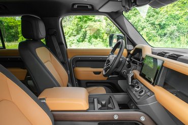 Szerintem is túlzás, nekem mégis bejön ez a hosszított karosszéria, arányai a mai 110-esnél is jobban hozzák a klasszikus 110-es hangulatát, pedig nem sok közös vonásuk van. Ez a zseniális benne. Az erős atmoszféra szép fokozatosan land roveres srácot farag bárkiből, itt minden forma, anyag és általában az ergonómia is telitalálat. A térérzet parádés, a kilátást csak a hatalmas tükrök tudják elrontani. Egy komplett márkára való tárolóhely vesz minket körül, a kilátszó csavarok és fémfelületek a múltra kacsintanak, közben fa és bőr adja a tudtunkra, hogy a szűk, rázós és zajos Defendert 2016-ban végleg nyugdíjazták.