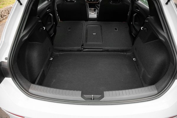 Hely tekintetében is jól áll a Cupra Leon: az evidens, hogy elöl jó létezni, ezt manapság már nem illik elrontani, de jó hír, hogy hátul se éreztem szűk tömlöcnek. A 184 centis magasságommal aránylag jól elfértem a szintén ugyanehhez a mérethez belőtt vezetőülés mögött. Semmi extra, nem egy S osztály, de kimatekolták, hogy jó legyen a hátsó sor is. A csomagtér 380 literes, amivel nem lesz a kategória királya. A magas perem miatt a cuccolás se kellemes, magasra kell emelni a vizespalackokkal teli zsugorfóliákat.