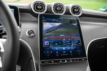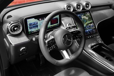 Ami a belteret illeti, én nem rajongok a Mercedes lapított jet formájú szellőzőiért, de az mindenképp pozitív, hogy a GLC Coupéban az üléspozíció és a kormánykerék szöge és vastagsága is arra buzdít, hogy egy Benz szedánban érezzem magam, ami szeret gyorsan menni. Az összes, kissé bazári trükk ellenére rögtön a beülés első pillanatától kezdve otthonos a kabin érzete.