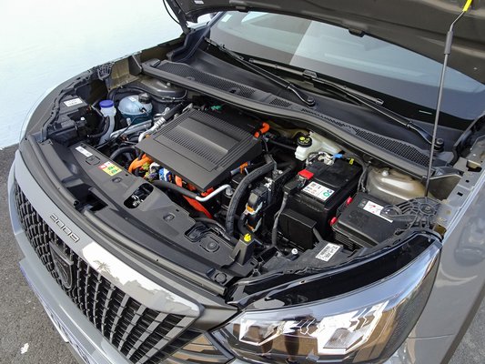 Az állandó mágneses szinkronmotor 28 lóerőt és 55 Nm nyomatékot termel, képes önállóan mozgatni mindkét karosszériát, persze csak korlátozottan. A visszatöltésnél a szokott módon generátorként termeli az áramot a vezetőülés alá beépített, 432 Wh hasznos kapacitású, 48 voltos akkumulátorba. Nem véletlenül építették be éppen oda, így sem az utastérből, sem a csomagtartóból nem harap ki hasznos helyet, a rövidebb kábelek miatt az energiaveszteség kisebb, és még a súlyelosztás is közelebb van az ideálishoz. Ettől még az elektromos rendszer 12 voltos, a kettőt egyenáramú feszültség-átalakító köti össze.