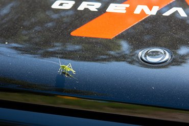Valaki erről megfeledkezhetett, mert ottlétem alatt belement egy fába, ami megnyomta a lökhárítót és a bal első sárhányót. A kérdéses Grenadierben, egy tetőcsomagtartóval és külső levegőszűrővel is felszerelt példányban ült fotós szerint ő személy szerint valószínűleg meg sem állt volna, annyira nem érzett ellenállást a fás randevú alatt. Az ilyen terepjárós helyzetekre mondják néha, hogy szegénybe belement az erdő. A hűtés nem sérült, a Grenadier folytatta.