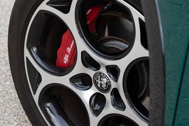 Az első képeken is tetszett, de úgy éreztem, a pajzs mellett a lámpák lopják el a show-t. Ha van is benne valami, Alexandros Liokis munkája a szemünk előtt életre kel, és jól működik. A lemezek hajlításaiból szoborszerű forma áll össze, tekintete szigorú, rendszámát oldalra tolva hordja, ahogy vagány Alfához illik, és ha ez sem hatna, a klasszikus rajzolatú felnik a Montreal zöld színnel már végképp magukra vonják a figyelmet. Nyilván azért kérnek 670 000 forintot, és nem az Alfa pirosért, azt ingyen adják. A fekete és a fehér 190 000, a Vesuvio szürke és a Misano kék 370 000 forintos extra.