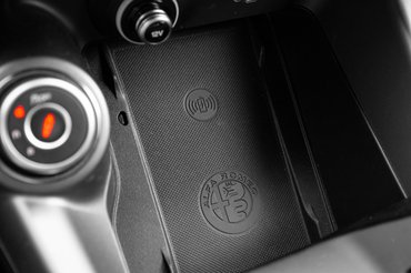 Ja, és az ülés combtámasza miatt egy kissé nehézkes a kiszállás. Mit várok? Ez egy sportos szabadidő-autó! Tényleg az, jók is ezek a sportülések, és jó is ez a sportkormány. Ott van az Alfa logó a fejtámlába hímezve, sőt, dombornyomva is látható a vezetéknélküli töltőn. Az egy okos megoldás, a telefon stabilan áll benne, és pont úgy döntötték meg, hogy lehessen látni a kijelzőjét. Na és a csőműszer? Az éles, 12,3 colos kijelzővel pótolva is múltidéző, a tipográfia a hatvanas évekből jön, mintha csak egy Giulia Spiderben ülnénk, mégis ott a sok mai funkció, és beállítási lehetőség.