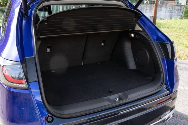 A csomagtartó méretét nem csak felülről vágja meg a tetővonal, hanem alulról is az 1,05 kWh-s akkupakk, és bár nincs olyan szintkülönbség a csomagtartóban, mint az alacsonyabb Civicnél, a padló összességében magasan van, a csomagtartó önmagában csupán 380 liter, ami persze némi padló alatti extra tárolórekesszel, pláne az ülések ledöntésével jelentősen több, viszont önmagában kevésnek érződik.