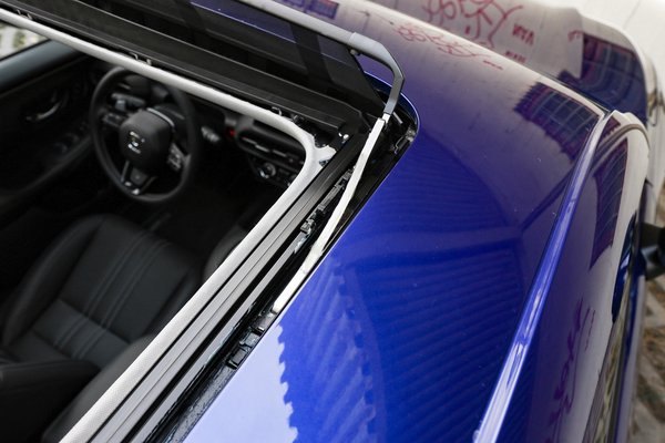A tetőablak szélterelőjének feltámasztását bármilyen sufniműhelyben szebben, megfolyt zsír nélkül, szebben hajtott lemezdarabbal meg tudták volna csinálni. A sportos vezetéstől nem lesz boldog az utasod, mivel az anyósoldalon nagyon hiányzik bármiféle kapaszkodó: a tetőn nincs, az ajtókárpiton pedig annyira hátul van és olyan pici, hogy tényleg csak az ajtó becsukására alkalmas. A tetőkárpit a felfogatásával együtt centiket mozog, a középboxot pedig kompletten az én térdembe nyomja az utas, ha a lába közé vesz egy hátizsákot. Nesze neked, japán gyártás!