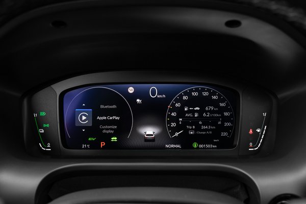 1 kWh akkumulátor nem túl sok. Egy hatékony villanyautó elmenne vele mondjuk 10 kilométert, a pazarlók csupán 3-4-et. De a Honda ZR-V alattam összesen 1 kilométert sem tudott menni tisztán elektromos módban. Egyrészt, ahogy bekapcsolod a szellőzést (nem a klímát, a szellőzést!), beröffenti a motort indításkor is – nincs benne olyan EV-mode, mint a Toyotákban –, de párszáz méter után a legnyugodtabb gurulás után is beindítja a motort, és ha egyszer beindította, akkor álló helyben is sokat fogod hallani, ahogy zúg alattad a motor, 50 körüli tempótól kezdve pedig tényleg csak akkor fogod a zöld EV feliratot látni a műszerfalon, ha épp teljesen elvetted a lábad a gázról és motorfékezel.