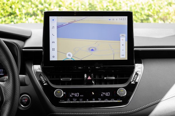 Nagyobb gond, hogy a fedélzeti navigáció nem akart működni. Bár mutatta az autó helyzetét, a kereső nem találta a beírt címeket, így útvonalat tervezni sem lehetett. Végül rácsatlakoztam az autóval a telefonom megosztott wifijére, a navi pedig életre kelt. Úgy tűnik, internetelérés nélkül nem működik, az autó maga pedig vagy létre tudja hozni a kapcsolatot, vagy nem, de inkább nem. Az esetek többségében a telefonos wifi-megosztós módszerhez kellett folyamodnom, bár egyszer magától, külső segítség nélkül is működött a rendszer. Ezekről a furcsa jelenségekről a Toyota kereskedés munkatársával is egyeztettem, aki szerint sajnos nem egyedi az eset: már egy kollégája is tapasztalt hasonlót egy másik autóban.