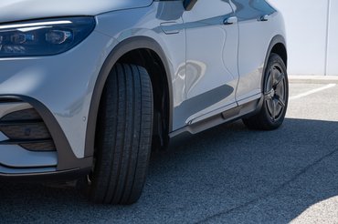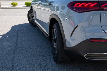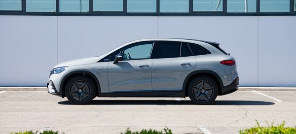 A neve nem igazán találó, mert bár SUV-nek hívják, sokkal jobban hasonlít az egyterűekre. A márkán belül leginkább az R osztályt idézi úgy, hogy a furcsa bumszliságát itt lágyan ívelő felületekbe csomagolták. Nagyon elektromosnak szeretne tűnni, markánsan el akar különülni a többi Merci hobbiterepjárótól, ami abszolút sikerül is neki. Ennek az az ára, hogy valahol egy megszokott, terepjárós arányú SUV és egy klasszikus, már divatjamúlt egyterű között lebeg félúton. Egészen biztosan nem lesz belőle dizájntörténeti ikon.