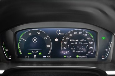 Az e:HEV apró akkumulátora a normál használat során teljesen feltöltődik úgy negyven perc alatt, majd a várakozásoknak megfelelően sokat segít a kigyorsításoknál, illetve hegynek felfelé. A hibrid hajtáshoz természetesen nem kell a maximum, a zöld csíkok száma pedig mindig a vezetési helyzettől függ. Ami segít, hogy a gyári navigáció a domborzat figyelembevételével optimalizálja az elektromos rásegítést.