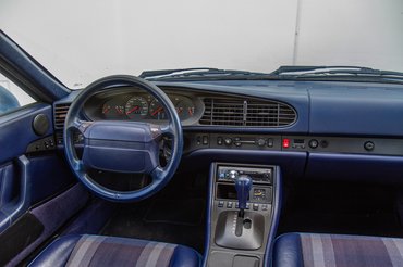 A Veterán Autó Kft. kínálatából származó, 1992-es 968-as például tízmillió forintba kerül, ez a nemzetközi kínálatot átfutva egy jellemző ár. A 911-es bolond színeiben rendelhető kistesót Levendulakékre fújták a gyárban, belsejét a hangulatos kockás kárpittal kombinált liláskék bőrbe kötötték. Tudom, ízlésről nem vitatkozunk, de ami egy Ford Fiestában giccsesen hat, az egy korabeli Porschéban maga a tökély! Ezt a komplett belsőről bátran el lehet mondani, pedig a 944 S2-höz képest néhány gombon kívül csak az ajtókárpitokat cserélték le.